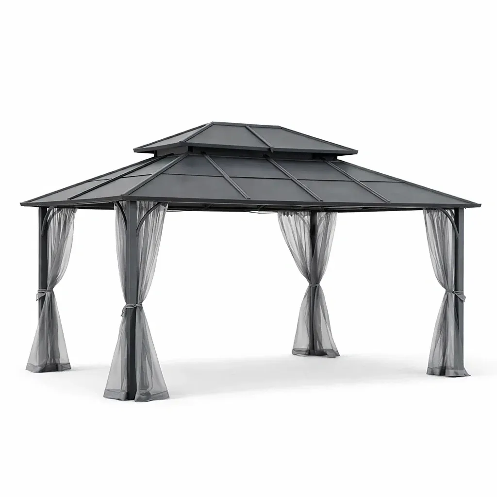 Conception avec poteaux de soutien, adaptée aux activités extérieures quotidiennes.